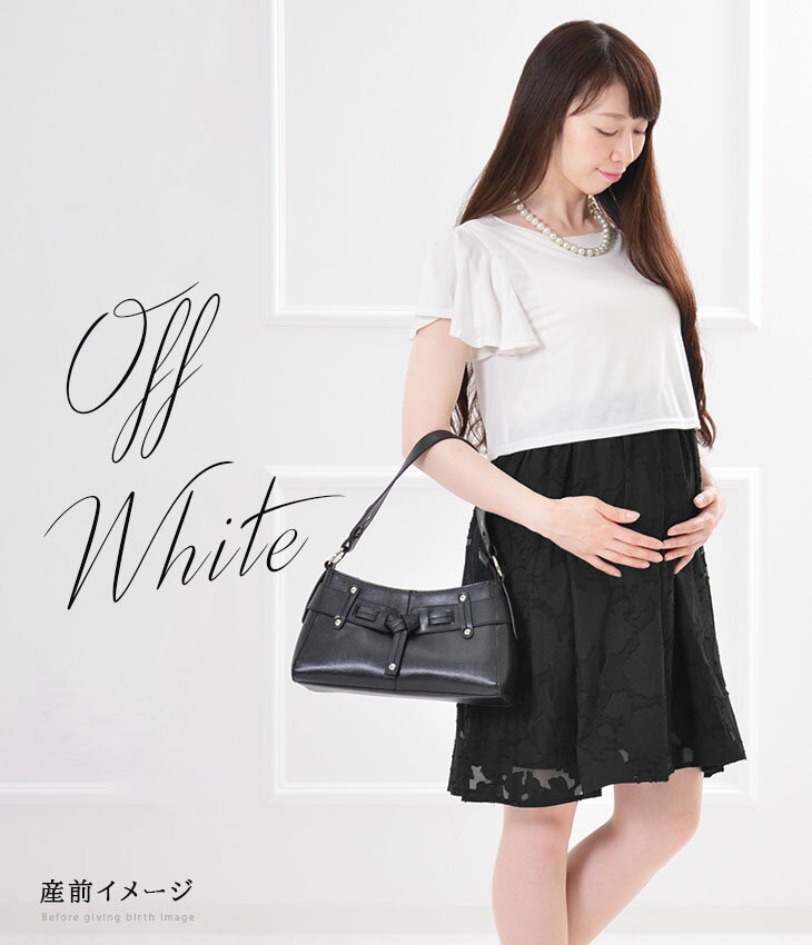 【サイズ】M/L 【カラー】オフホワイト/ネイビー 【マタニティ分類 [ワンピース][マタニティ] ▼ラウンドネックが女性らしさを演出します。
