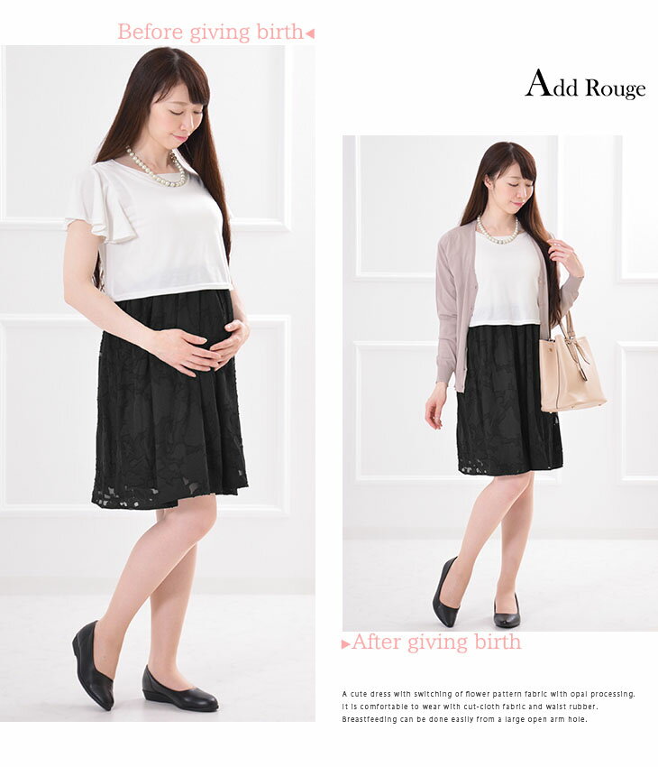《在庫限り》産前産後に使えるマタニティウェア♪授乳口付き花柄切替半袖ワンピース【Q3】[M/L]通勤・OL・七五三・お宮参りの服装の母親(ママ)用にも使えるワンピース。授乳服 妊婦服 産前 産後 妊娠中 春 夏 秋 冬(c580109)