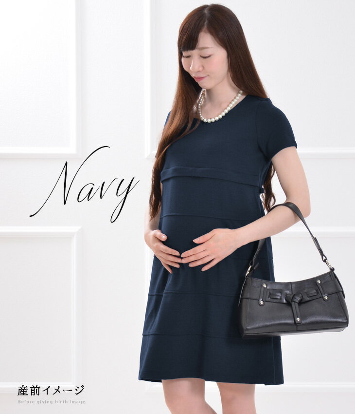 【サイズ】M/L 【カラー】ネイビー/ブラック 【分類】[マタニティー][ワンピース] ▼事務服・通勤に使えるマタニティワンピース。