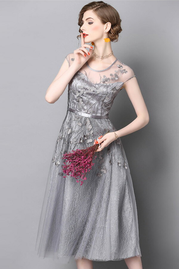 結婚式 パーティードレス S-3L 刺繍 ミモレ丈 ワンピース レディース 予約 半袖 袖ありAYL-LYY-T858106 パーティー 透け編み レース シースルー 上品 美しい 大人 優雅 ロング ドレス ピンク 水色 ライトブルー 送料無料
