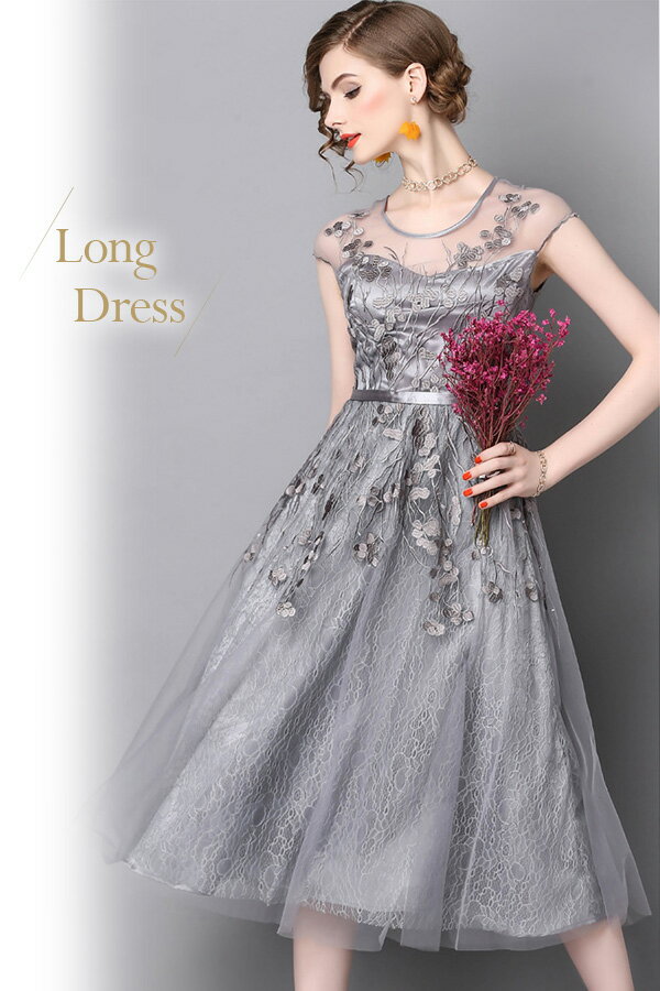 【期間限定sale 2000円off】パーティードレス ロング 大きいサイズ 結婚式 ワンピース ロング丈 袖あり ドレス パーティドレス チュール 結婚式ドレス お呼ばれドレス フォーマル 花柄シフォンレース ミモレ丈 ワンピース ドレス【dsp120】